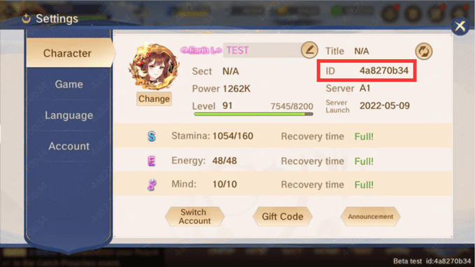 2. Enter your ID and Server